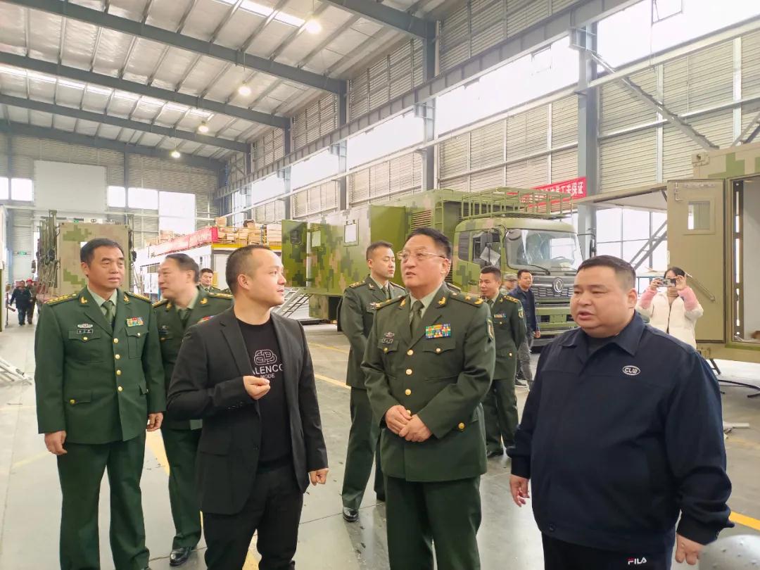 視察組參觀的第二站,來到了程力汽車集團應急保障車生產車間調研,對程力野外露營車、淋浴車、餐車、被服洗滌車、電源搶險車、排澇車等軍民兩用裝備的生產工藝與產能,表示出濃厚的興趣;當首長們了解到中國神舟十三返航英雄們,所用的地面后勤保障醫監醫保醫療專用車,也是程力公司所生產的情況后,大加贊許。